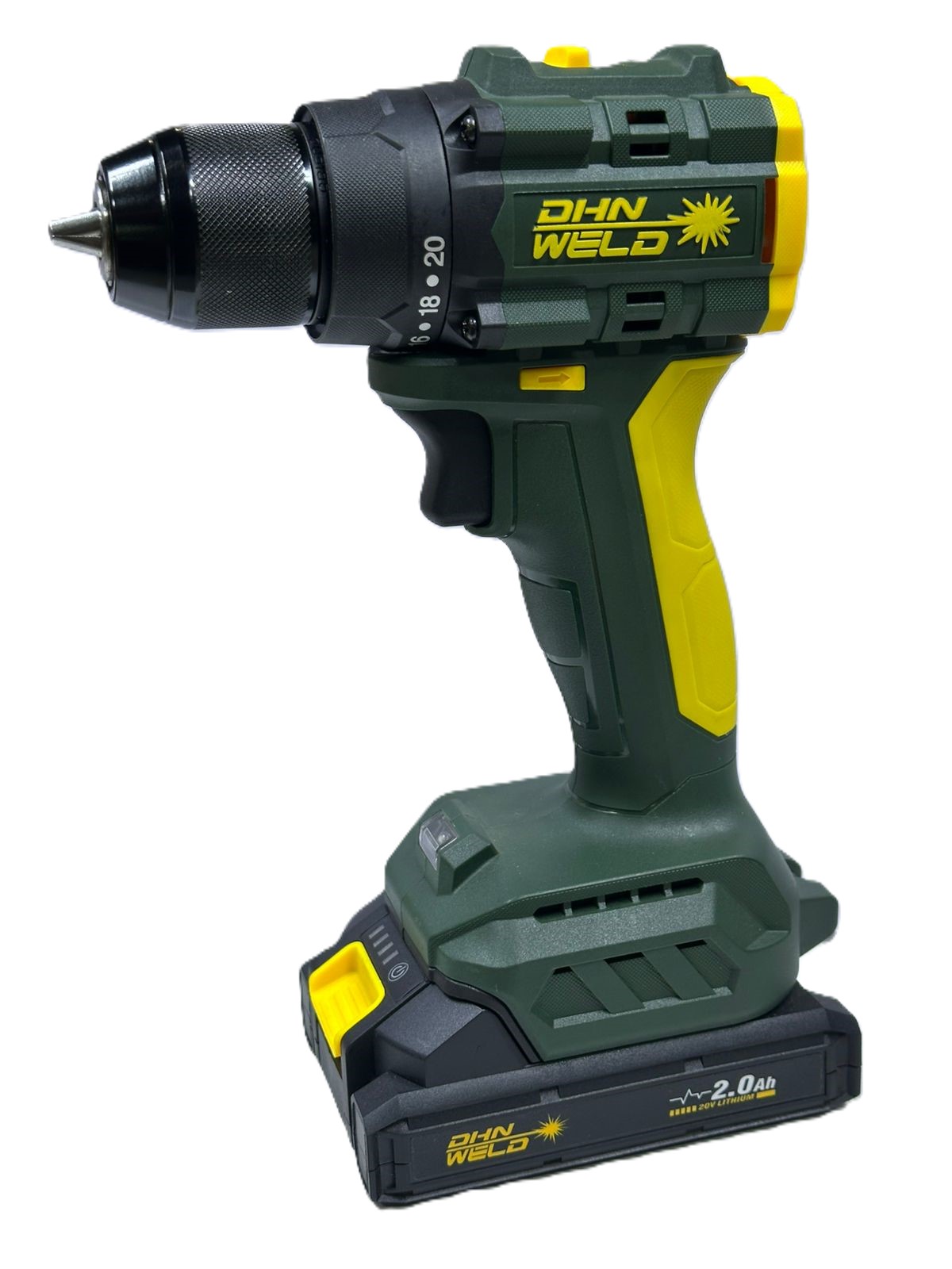 DHN BRUSHLESS 10MM 20.0V CHARGING DRILL 2 BATTERY GREEN دريل شحن اخضر